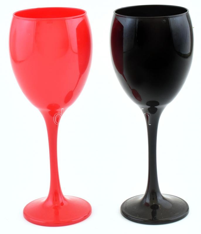 Fekete és piros talpas borospohár, jelzés nélkül, hibátlan, m:20,5cm