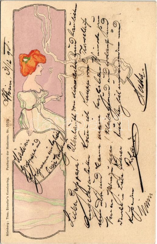 1899 (Vorläufer) Coeur Dame. Art Nouveau lady smoking. Theo. Stroefer&... https://www.darabanth.com/en/412-Online-auction/412.0/Postcards/Art-postcards~2000068/1899-Vorlaufer-Coeur-Dame-Art-Nouveau-lady-smoking-Theo-Stroefers-Kunstverlag-Postkarte-der~II2568863