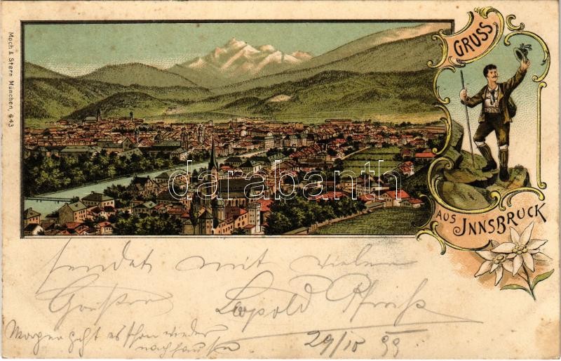 1899 (Vorläufer) Innsbruck. Gruss aus... Moch đ Stern 643. Art Nouveau, floral, litho (fl)