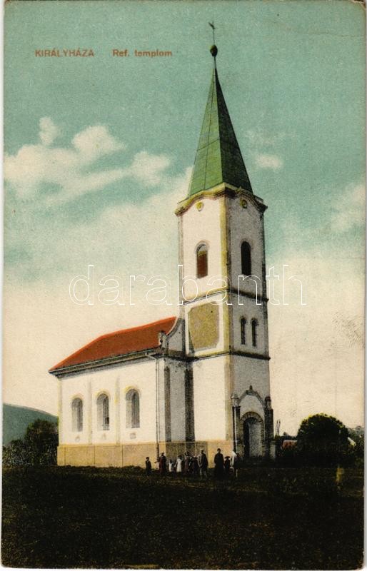 Királyháza, Korolevo, Královo nad Tisou; Református templom. Vasúti levelezőlapárusítás 249. / Calvinist church (r)