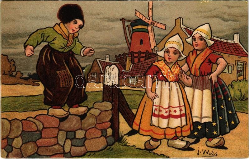 Children art postcard. litho s: J. Wells (kis szakadások / small tears...