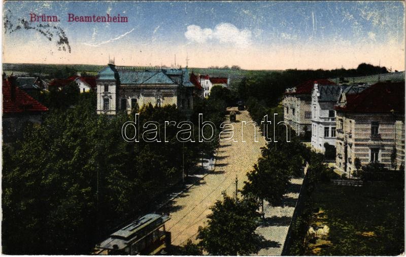 1922 Brno, Brünn; Beamtenheim / street, tram