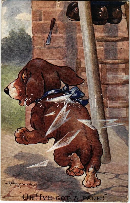 Oh' I've got a pane! Humorous dog motive card. C. W. Faulkner & Co. Series 1419. s: A. E. Kennedy (EK)