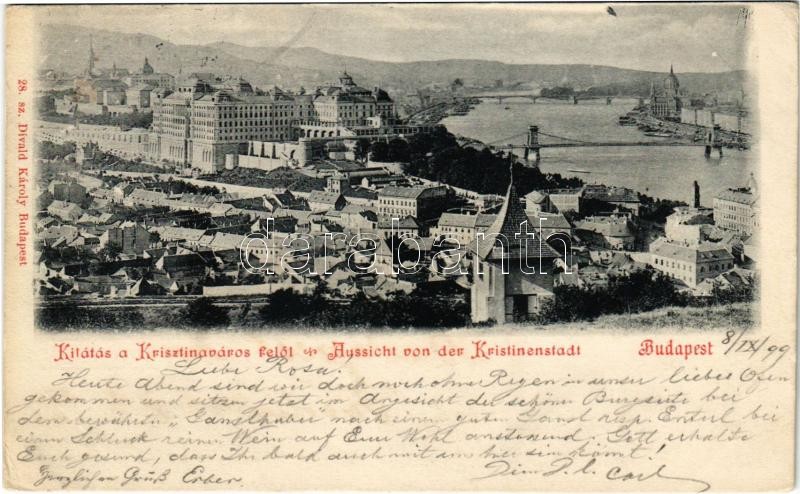 1899 (Vorläufer) Budapest I. Kilátás a Krisztinaváros felől, Királyi vár, Lánchíd, Tabán. Divald Károly 28. sz. (Rb)