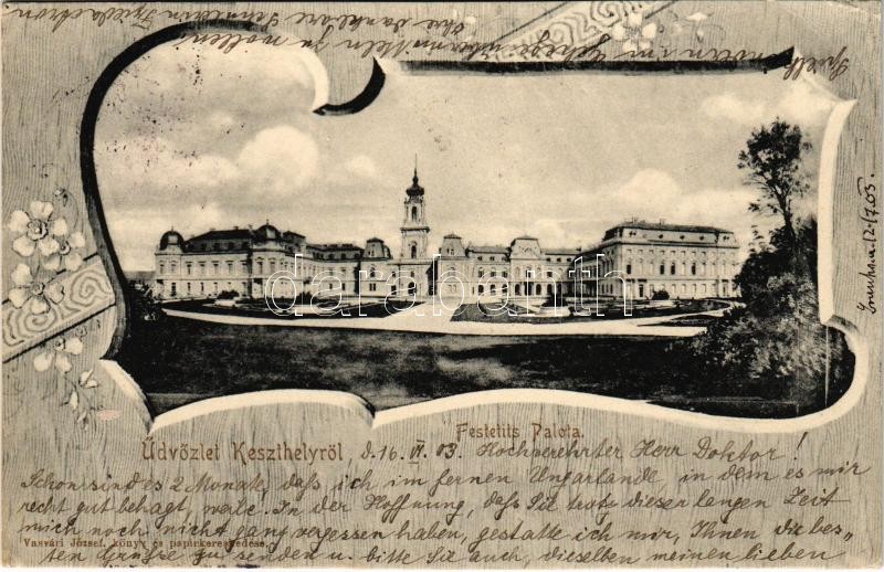 1903 Keszthely, Festetics palota. Vasvári József kiadása, Art Nouveau, floral (EK)