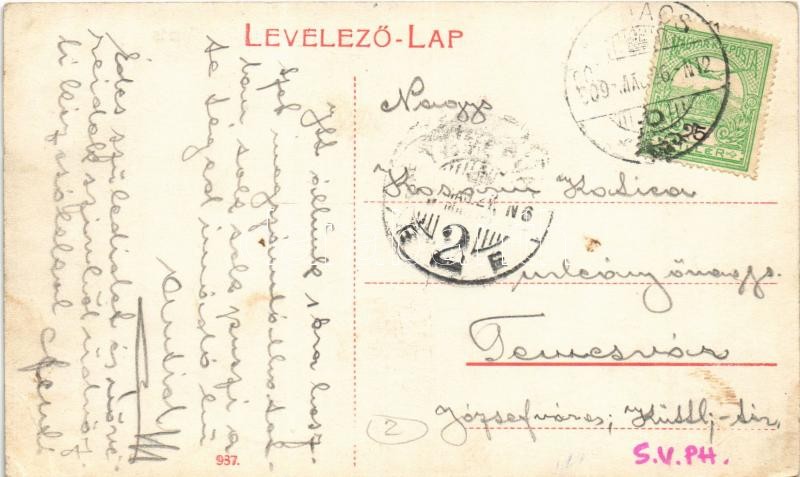 1909 Mohács, hajóállomás, gőzhajó farfedélzeti kormánya (EK)