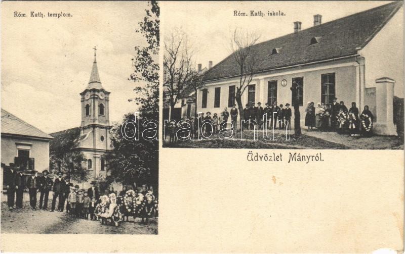 1935 Mány, Római katolikus templom és iskola. Wokaun József felvétele,...