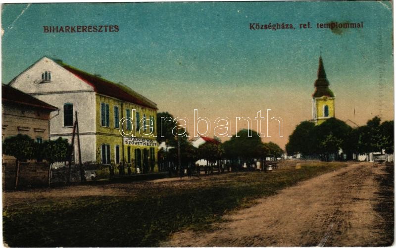 Biharkeresztes, Községháza, református templom, hangya szövetkezet üzlete és saját kiadása (EK)