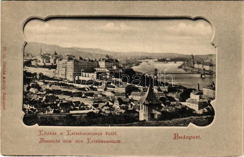 Budapest I. Kilátás a Krisztinaváros felől, Királyi vár, Lánchíd, Tabán. Divald Károly 28. sz.