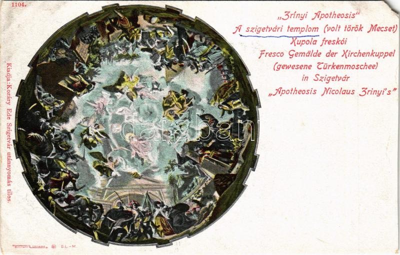 Szigetvár, "Zrínyi Apotheosis" A szigetvári templom (volt török mecset) kupola freskói. Kozáry Ede kiadása (EM)
