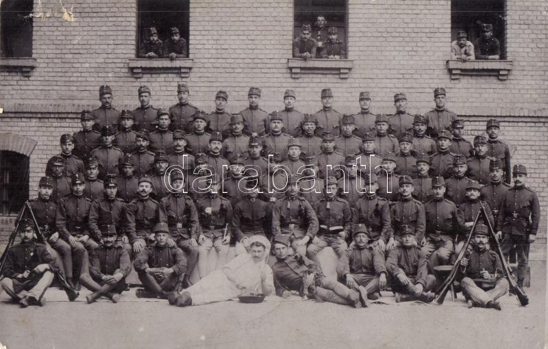 1906 Budapest, katonák csoportképe a laktanyában / Hungarian military,...