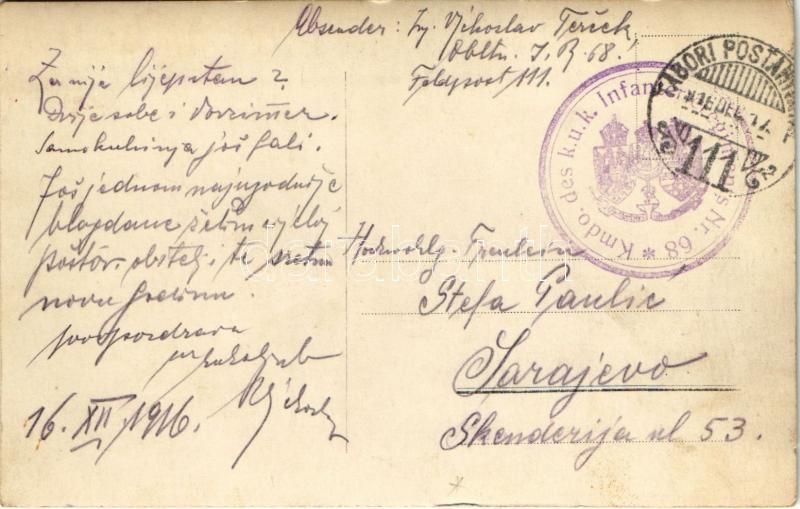 1916 Osztrák magyar álcázott állás / WWI K.u.k. military camouflaged post. photo + "Kmdo. des k.u.k. Infanterieregiments Nr. 68."