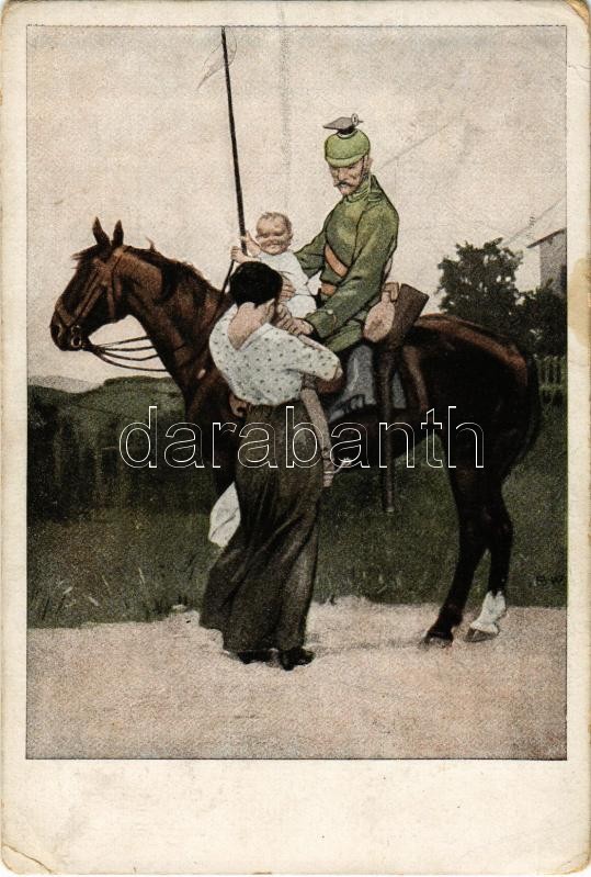 1917 Abschied. Kriegspostkarten von B. Wennerberg Nr. 1. / WWI German military art postcard, farewell s: B.W. (Rb)
