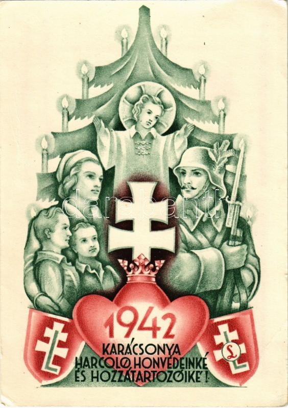 1942 Karácsonya Harcoló honvédeinké és hozzátartozóiké. Leventeifjúság... https://www.darabanth.com/en/412-Online-auction/412.0/Postcards/Militaria~2000058/1942-Karacsonya-Harcolo-honvedeinke-es-hozzatartozoike-Leventeifjusag-honvedkaracsonya-~II2569950