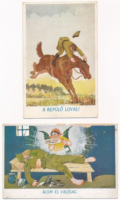 4 db RÉGI magyar katonai humoros grafikai képeslap / 4 pre-1945 Hungar...