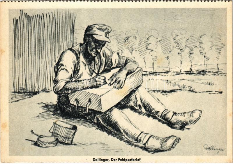 Der Feldpostbrief. Soldatenkalender 1941 / WWII German military art postcard. Zentral-Verlag der NSDAP (German Nazi Party) s: Dallinger