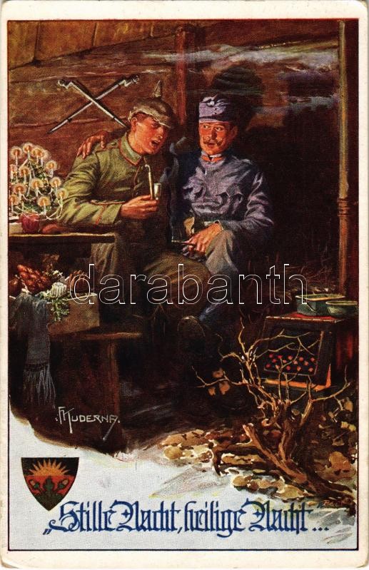 Description: Stille Nacht, heilige Nacht... / WWI German and Austro-Hungarian K.u.K. military art postcard, Viribus Unitis propaganda, Christmas greeting. Deutscher Schulverein Karte Nr. 828. s: Kuderna (EK)