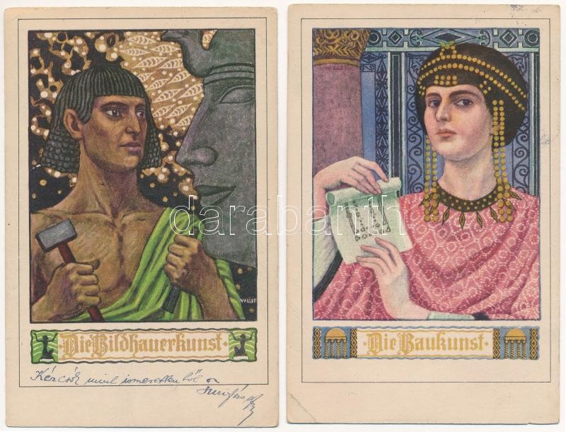 2 db RÉGI művész motívum képeslap / 2 pre-1945 art motive postcards: Die Baukunst / Die Bildhauerkunst. B.K.W.I. 130-1/5.