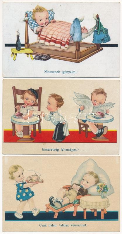 3 db RÉGI humoros gyerek motívum képeslap / 3 pre-1945 humorous childr...