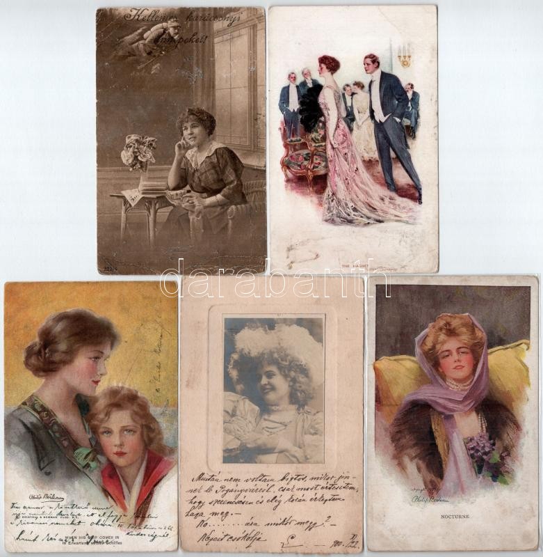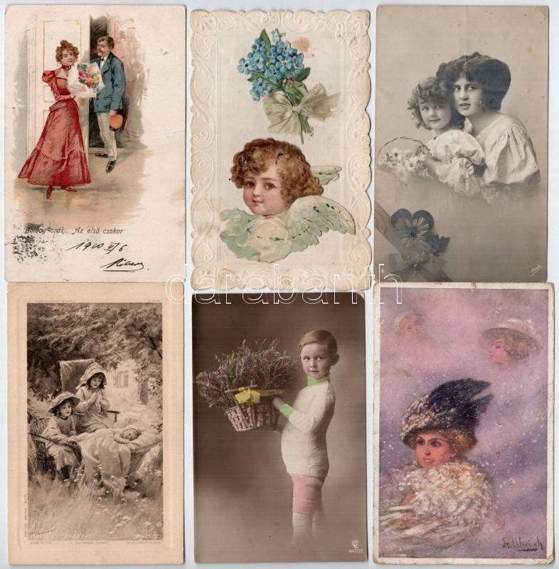 Description: 66 db RÉGI motívum képeslap vegyes minőségben: hölgyek, üdvözlőlapok, lithok és művész / 66 pre-1945 motive postcards in mixed quality: ladies, greeting, lithos, art
