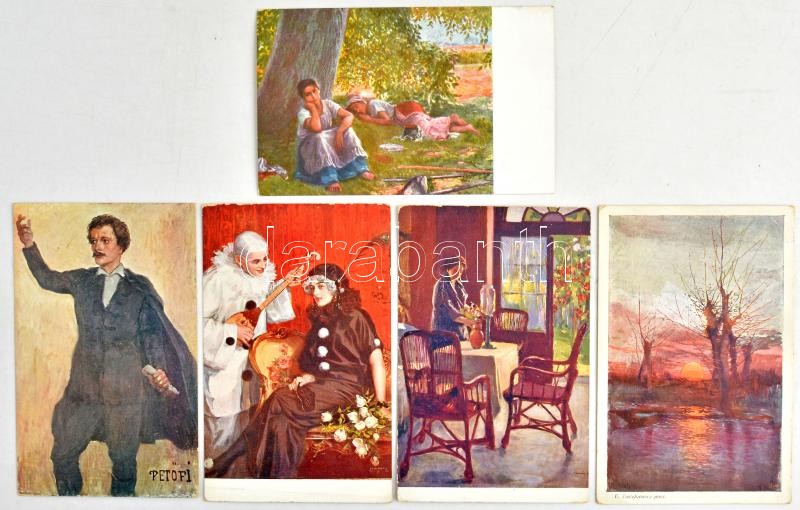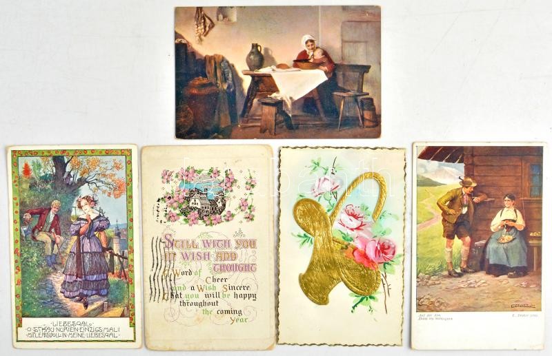Description: Kb. 150 db RÉGI motívum képeslap vegyes minőségben: üdvözlőlapok, városok, motívumok, hölgyek és életképek / Cca. 150 pre-1945 mostly motive postcards in mixed quality: greetings, towns, ladies