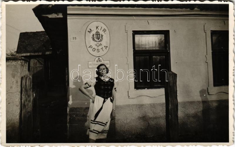 Magyar Királyi Posta postatakarékpénztár postáskisasszonya / Hungarian female postlady. photo (fl)