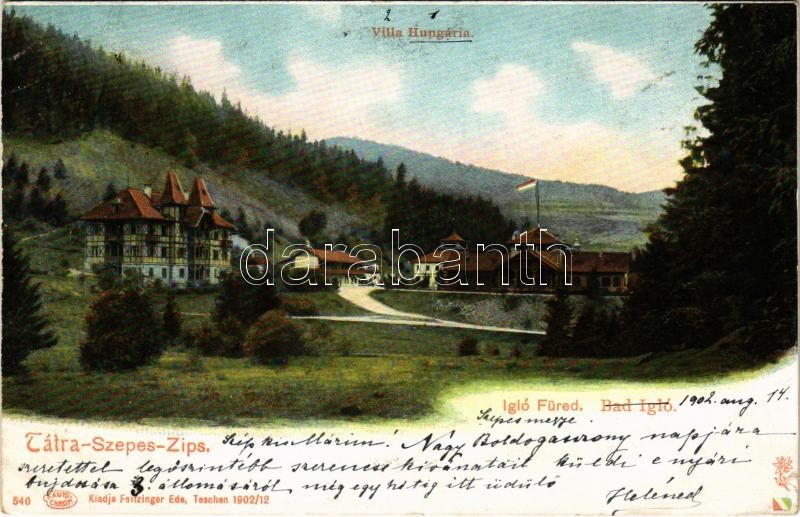1902 Iglófüred, Spisská Nová Ves Kupele, Novovesské Kúpele; Villa Hungária. Feitzinger Ede 1902/12 540. (EK)