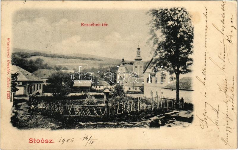 1906 Stósz, Stoósz, Stós; Erzsébet tér, templom. Wlaszlovits Gusztáv 1302. / square, church (felületi sérülés / surface damage)