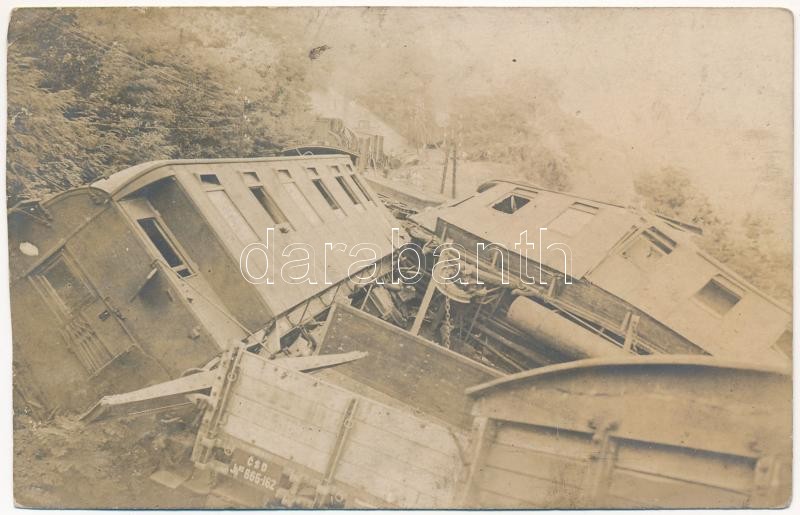 1919 Fülek, Filakovo; Vasúti karambol, vasúti szerencsétlenség / railway accident, disaster, trainwreck. photo (vágott / cut)