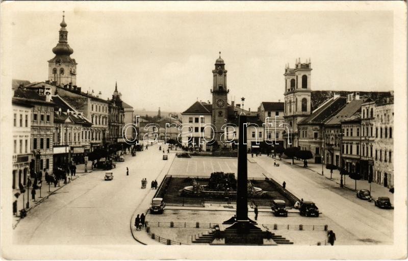 1951 Besztercebánya, Banská Bystrica; Nám. Nár. povstania / tér, üzletek, automobilok / square, shops, automobile (EK)