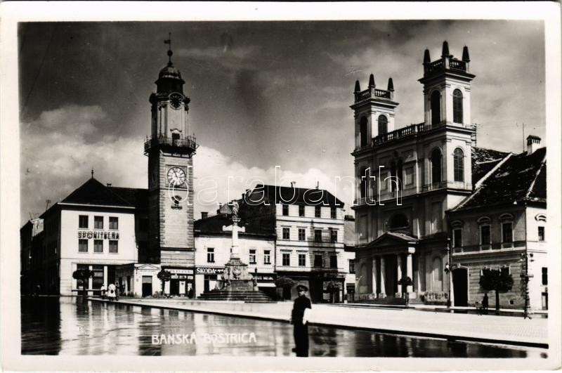 Besztercebánya, Banksá Bystrica; tér, templom, üzletek / square, church, shops