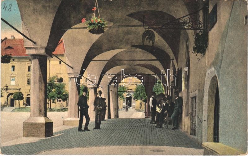 Lőcse, Levoca; a városháza árkádja / arcades of the town hall
