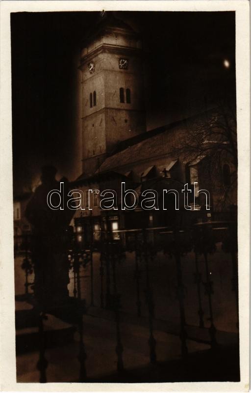 Rozsnyó, Roznava; őrtorony este, üzletek / watchtower at night, shops (lyuk / pinhole)