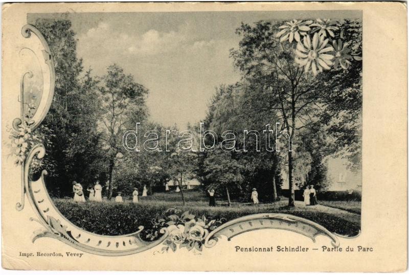 1909 Vevey, Pensionnat Schindler, partie du Parc. Art Nouveau, floral (EK)