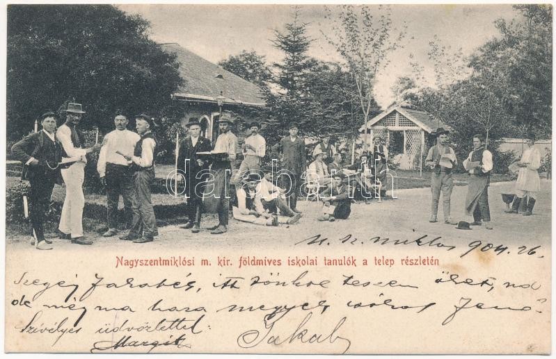 1904 Nagyszentmiklós, Sannicolau Mare; M. kir. földműves iskolai tanul... https://www.darabanth.com/en/412-Online-auction/412.0/Postcards/Transylvania~2000007/1904-Nagyszentmiklos-Sannicolau-Mare-M-kir-foldmuves-iskolai-tanulok-a-telep-reszleten-a~II2569371