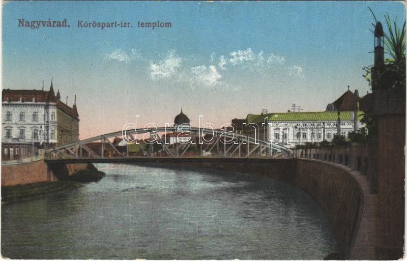 1918 Nagyvárad, Oradea; Körös part, izraelita templom, zsinagóga / Cri...