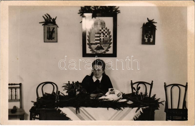 Nagykároly, Carei; Karácsony hivatalban, magyar címerrel. Kelet fényképészeti műterem / Christmas in the office, Hungarian coat of arms. photo