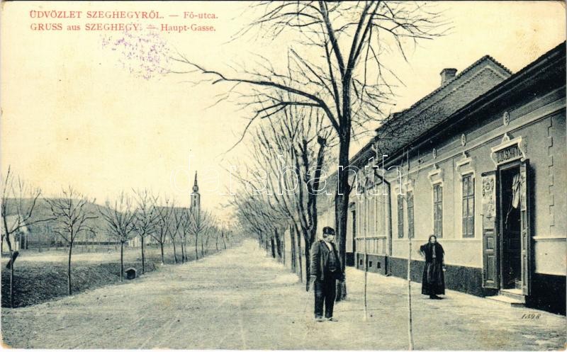 Szeghegy, Sekic, Lovcenac; Fő utca, L. D. Schaffe üzlete, templom. W.L...