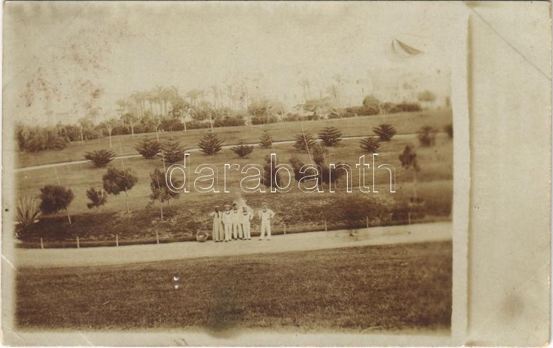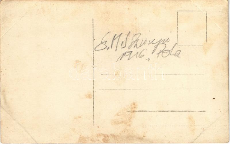 1916 Pola, Pula; SMS Zrínyi az Osztrák-Magyar Haditengerészet Radetzky-osztályú pre-dreadnought csatahajó matrózai szárazföldön / K.u.K. Kriegsmarine Matrosen / Austro-Hungarian Navy, mariners of SMS Zrínyi on mainland. photo (fl)