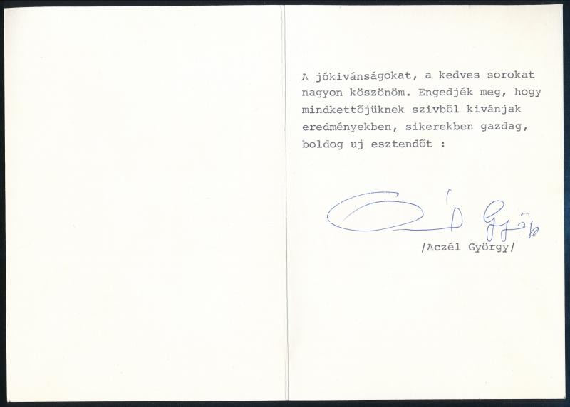 Aczél György (1917-1991) kommunista kultúrpolitikus autográf aláírása újévi üdvözlőlapon
