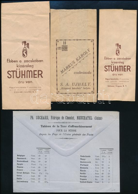 Stühmer, Suchard stb. papírzacskók és boríték, 4 db