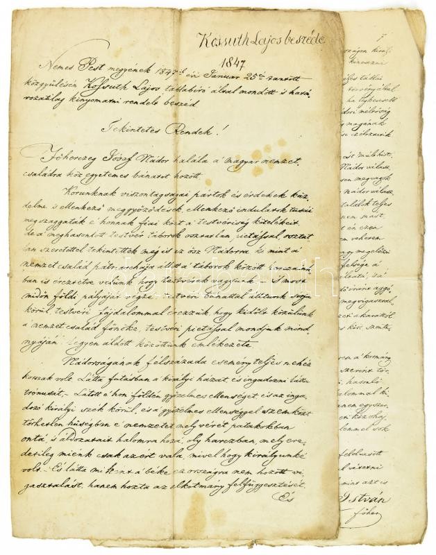 1847 Kossuth beszéde Pestmegye közgyűlésén az elhalt József nádorról é... https://www.darabanth.com/en/413-Online-auction/413.0/Art-and-other-collectibles/Historical-documents-manuscripts~500019/1847-Kossuth-beszede-Pestmegye-kozgyulesen-az-elhalt-Jozsef-nadorrol-es-fianak-Istvan-fC5~II2574067