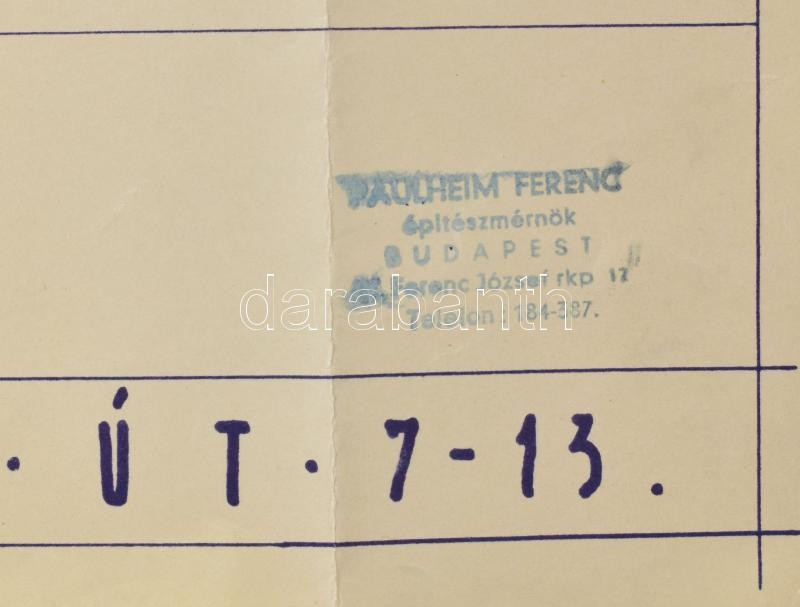 Description: Az 1933-ban megnyitott kerepesi úti ügető (BÜE) távlati látványterve vázlatosan. Nagy méretű a tervező: ifj. Paulheim Ferenc pecsétjével jelzett. 84x44 cm Hajtva