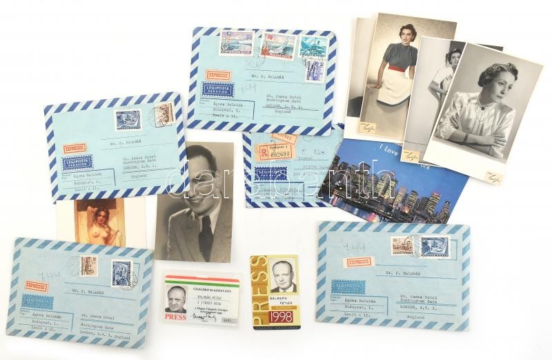 cca 1938-1998 Balabán Péter (1917-2002) újságíró, műfordító igazolványai, fotója, levelei, képeslapjai, valamint néhány képeslap.