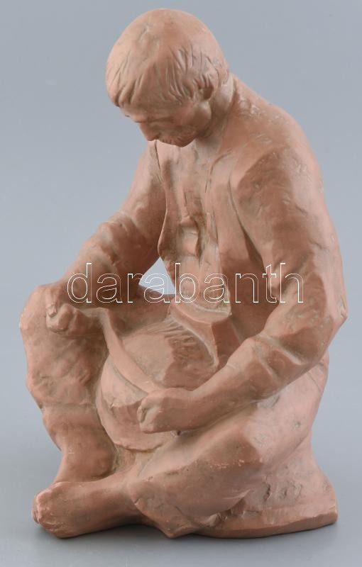 Fekete Géza (1906-1976): Teknőfaragó. Terrakotta, jelzett, hibátlan. 2...
