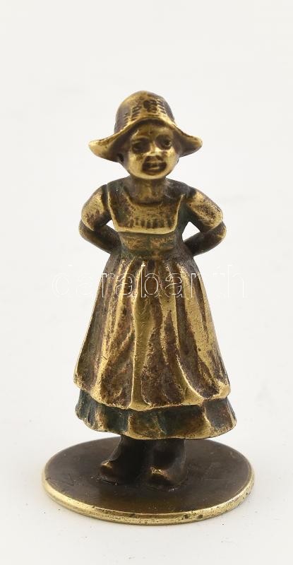 Holland lány figura, bronz, jelzés nélkül, kopott, m: 5,5cm
