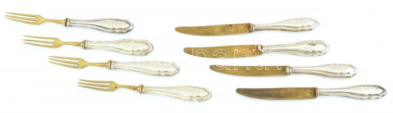 Ezüst (Ag) markolatú villa 4db, kés 4db, jelzett,