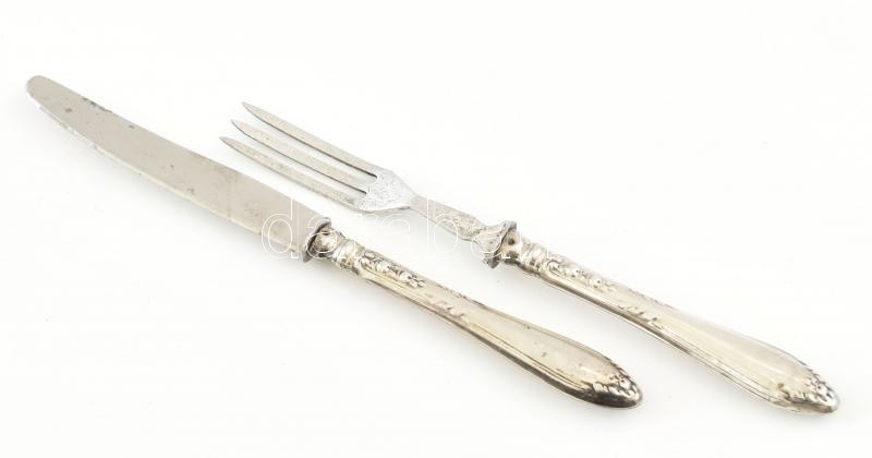 Ezüst (Ag) markolatú villa 5db, kés 6db, jelzett,