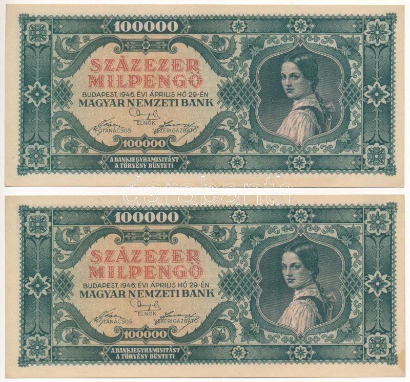 https://www.darabanth.com/en/413-Online-auction/413.0/Numismatics/Hungarian-Banknotes~1500007/1946-100000MP-2x-sorszamkovetok-B-055-081129-055081130-TI-I--Adamo-P30~II2584980