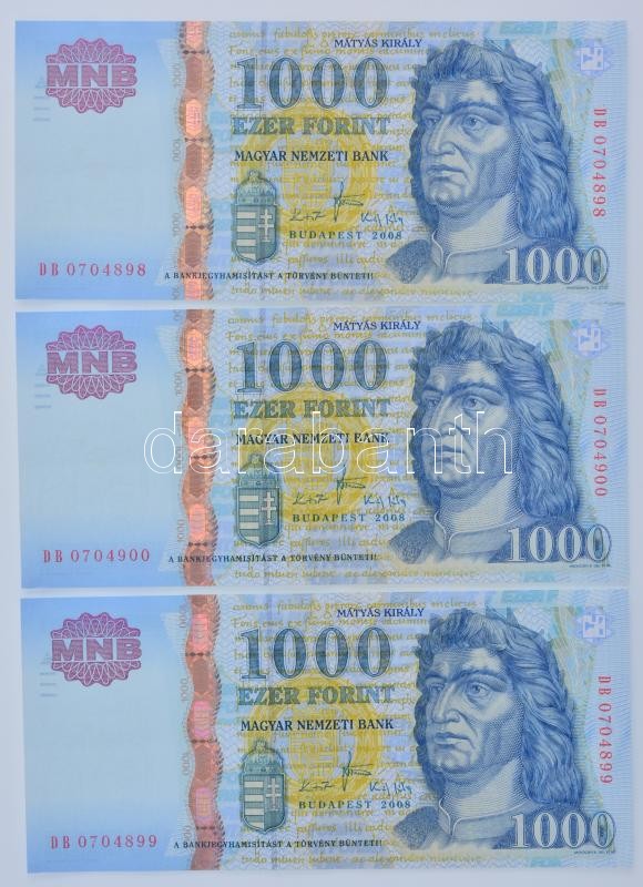2008. 1000Ft (3x) sorszámkövetők "DB 0704898-0704900" T:II
